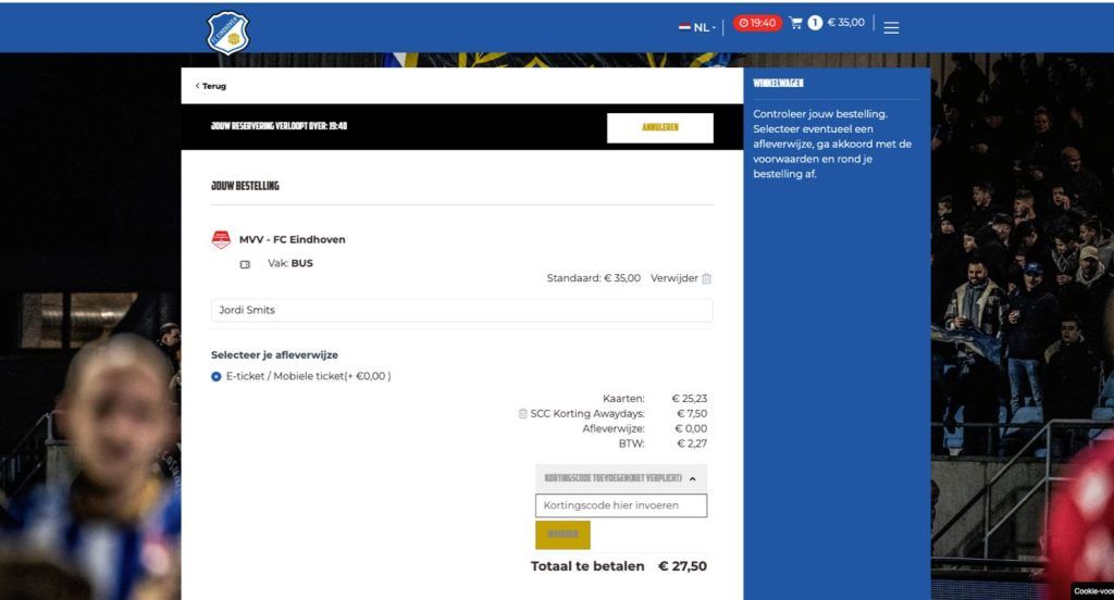 Belangrijk: de kortingscode is uitsluitend geldig voor seizoenkaarthouders en per seizoenkaarthouder één keer per uitwedstrijd te gebruiken. Niet-seizoenkaarthouders kunnen de kortingscode niet gebruiken.