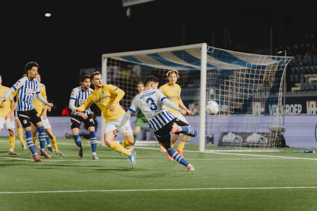 Xander Blomme stuurde met een pass langs de zijlijn Tyrese Simons diep, die ver mocht komen maar van dichtbij in het zijnet van het doel van keeper Ties Wieggers schoot. Niet lang daarna zorgde een onderschepping van ingevallen Sven Blummel ervoor dat Van Veen dichtbij een doelpunt kwam, maar zijn schot belandde net naast.