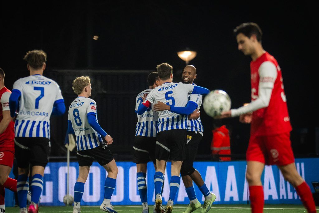 Na nog geen tien minuten spelen viel de openingstreffer. Sven Simons verlegde het spel richting de rechterkant, waar Sven Blummel werd gevonden. Zijn voorzet bereikte Marlon van de Wetering, die in het strafschopgebied onderuit ging in een duel met Wout Coomans. Scheidsrechter Edwin van de Graaf zag er een overtreding in en wees resoluut naar de stip. Rangelo Janga nam zijn verantwoordelijkheid en schoot de penalty overtuigend in de rechterbovenhoek: 1-0.