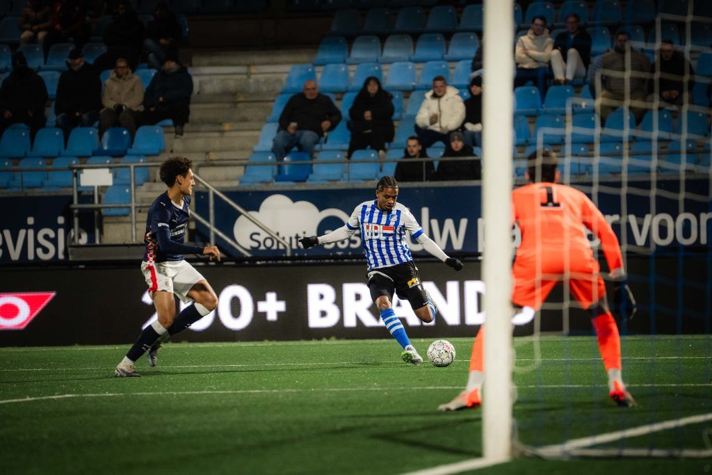 In de slotfase kreeg Jong PSV nog een vrije trap. Nicolas Verkooijen probeerde de bal in de kruising te krullen, maar Borgmans tikte hem eruit. Kort voor tijd draaide Edoly Lukoki zich nog knap vrij, maar zijn schot ging naast.