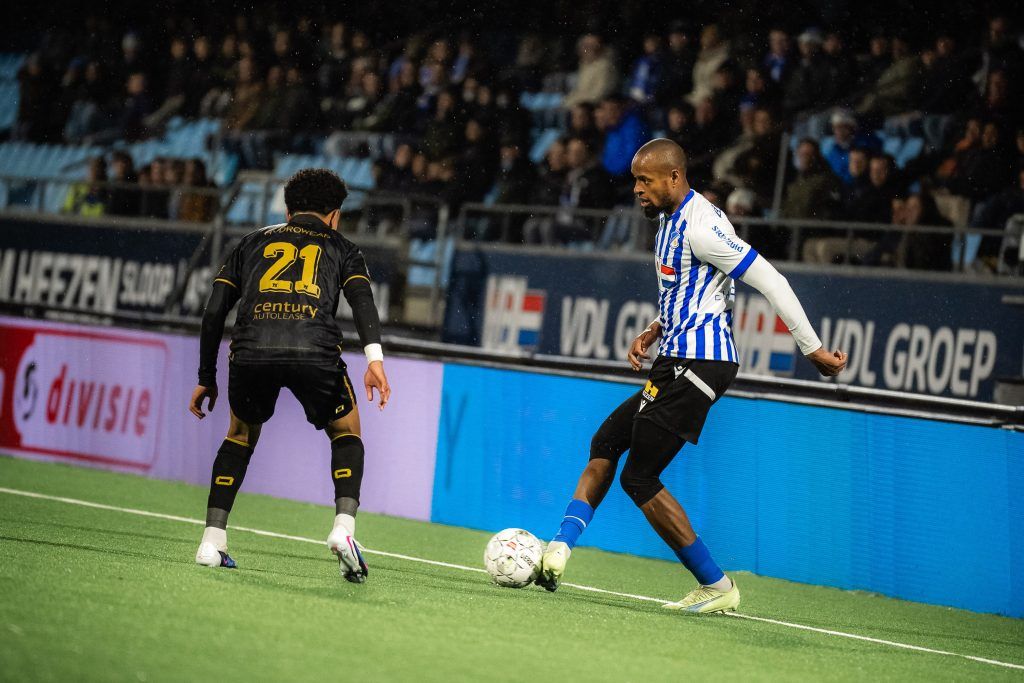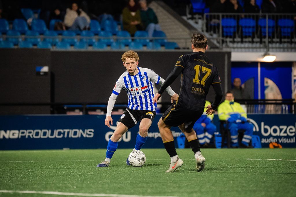In de 25e minuut probeerde Noam Emeran een strafschop te versieren, maar scheidsrechter Clay Ruperti trapte daar niet in en gaf hem een gele kaart. Vlak voor rust liep de spanning nog even op. Christian รstergaard ontving een gele kaart na een overtreding op Tyrese Simons. Uit de daaropvolgende vrije trap leek Van Veen gevaarlijk te worden, maar hij stond buitenspel en kreeg bovendien geel voor het weggooien van de bal. Zo gingen beide ploegen rusten met een 0-0 stand.