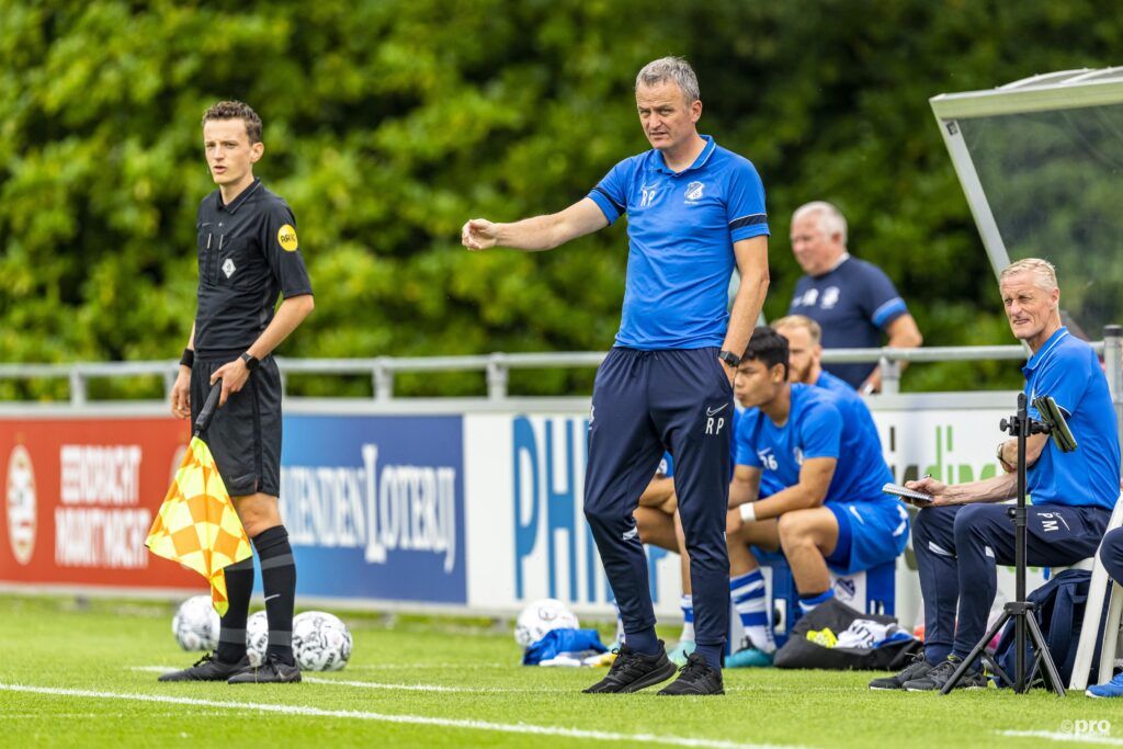 Hoofdtrainer Rob Penders geeft aanwijzingen