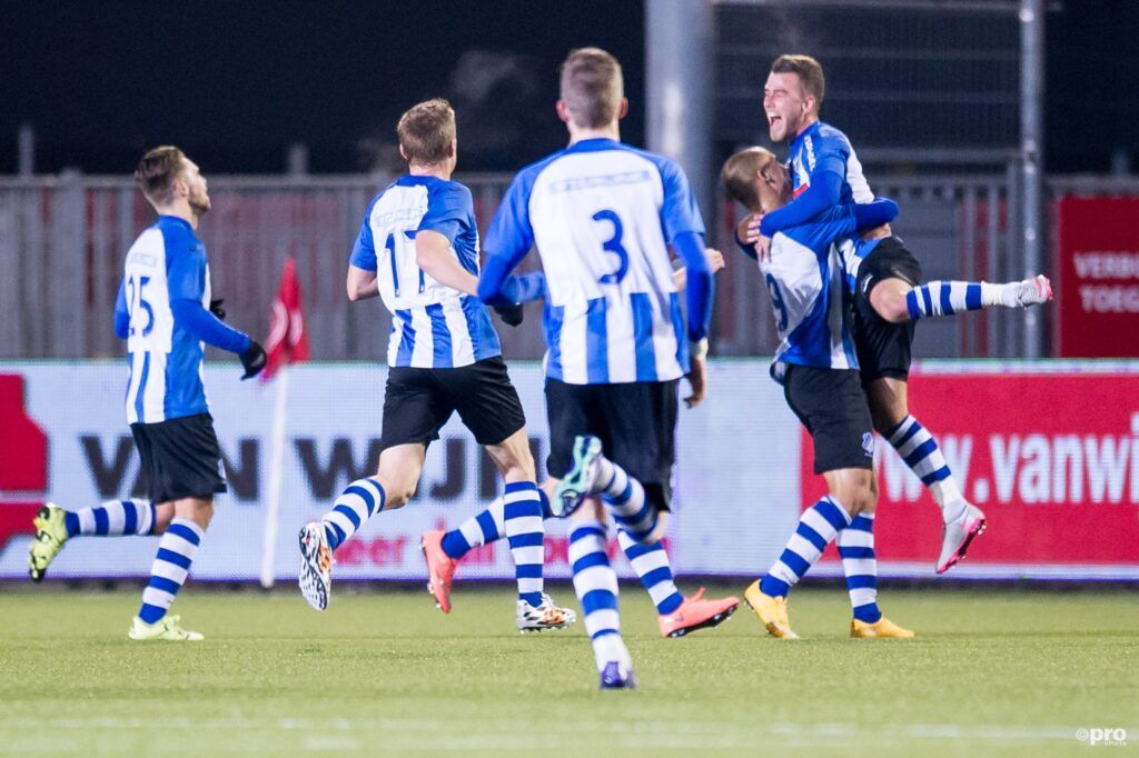 Spelers vieren het doelpunt van Kaj de Rooij.