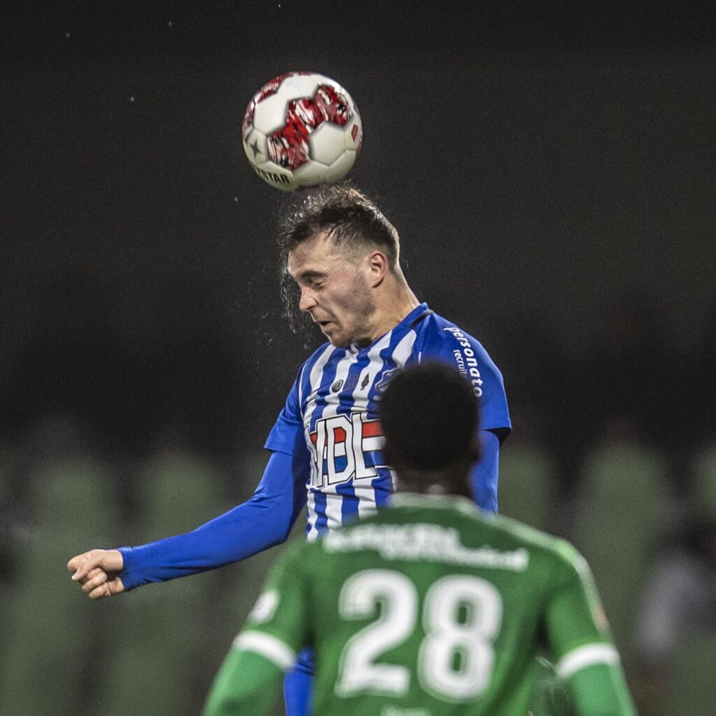 Justin Ogenia in duel tijdens FC Dordrecht – FC Eindhoven
