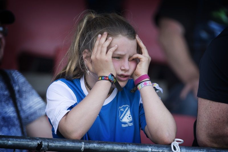 Nadat de rust weer even was wedergekeerd, dribbelde Kaj de Rooij het zestienmetergebied in maar werd gevloerd door Steven Edwards. Scheidsrechter Alex Bos was resoluut en wees direct naar de stip, penalty FC Eindhoven. Branco Van den Boomen schoot vervolgens overtuigend binnen vanaf elf meter, 2-1. Een spannende slotfase drong aan en de Blauw-Witten probeerden de gelijkmaker op het scorebord te krijgen. De vier minuten extra tijd mochten helaas niet meer baten. De derby werd gewonnen door Helmond Sport en daarmee is voor het bereiken van de Keuken Kampioen Play-Offs nog een wonder nodig.
