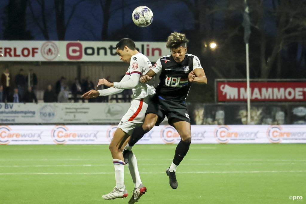 De eerste schotkans van de wedstrijd kwam van een meter of twintig van de voet van Ozan Kökcü. Nigel Bertrams kon de poging makkelijk pakken. Na 22 minuten kwam FCE voor het eerst voor het doel van Abdel Elouazzane. Een bal op Joey Sleegers kon ternauwernood tot corner worden verwerkt. Deze corner werd net over gekopt door Maarten Peijnenburg.